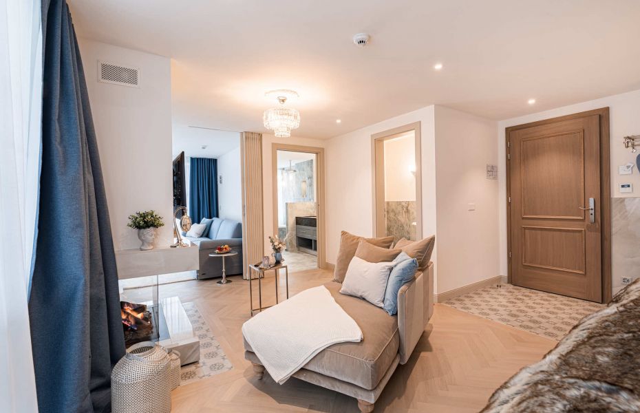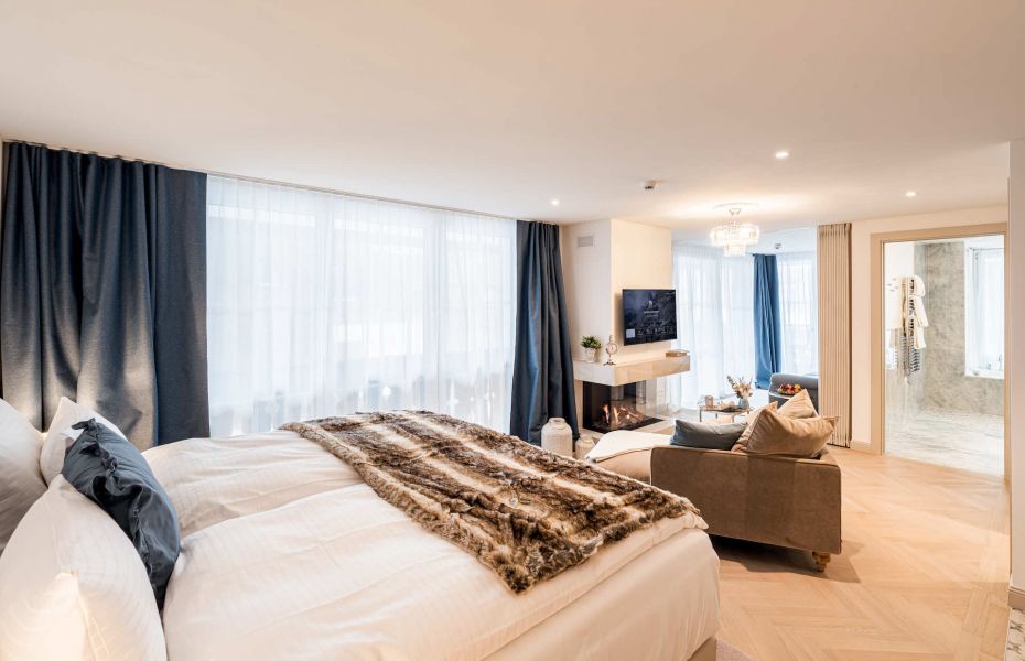 Die Lounge Stühle auf dem Südbalkon laden zum Sonne tanken mit Blick auf das Matterhorn ein.