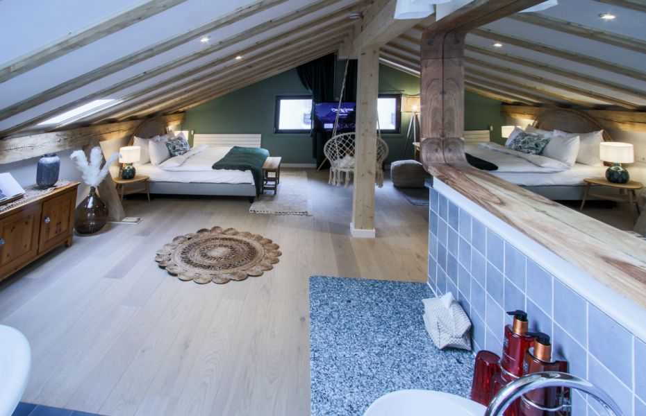 Ce spacieux Attica Loft Studio propose un lit double confortable dans le sous-toit, une salle de bain ouverte avec une baignoire vintage sur pied avec douche, une cuisine ouverte entièrement équipée avec un salon et une salle à manger intimes.